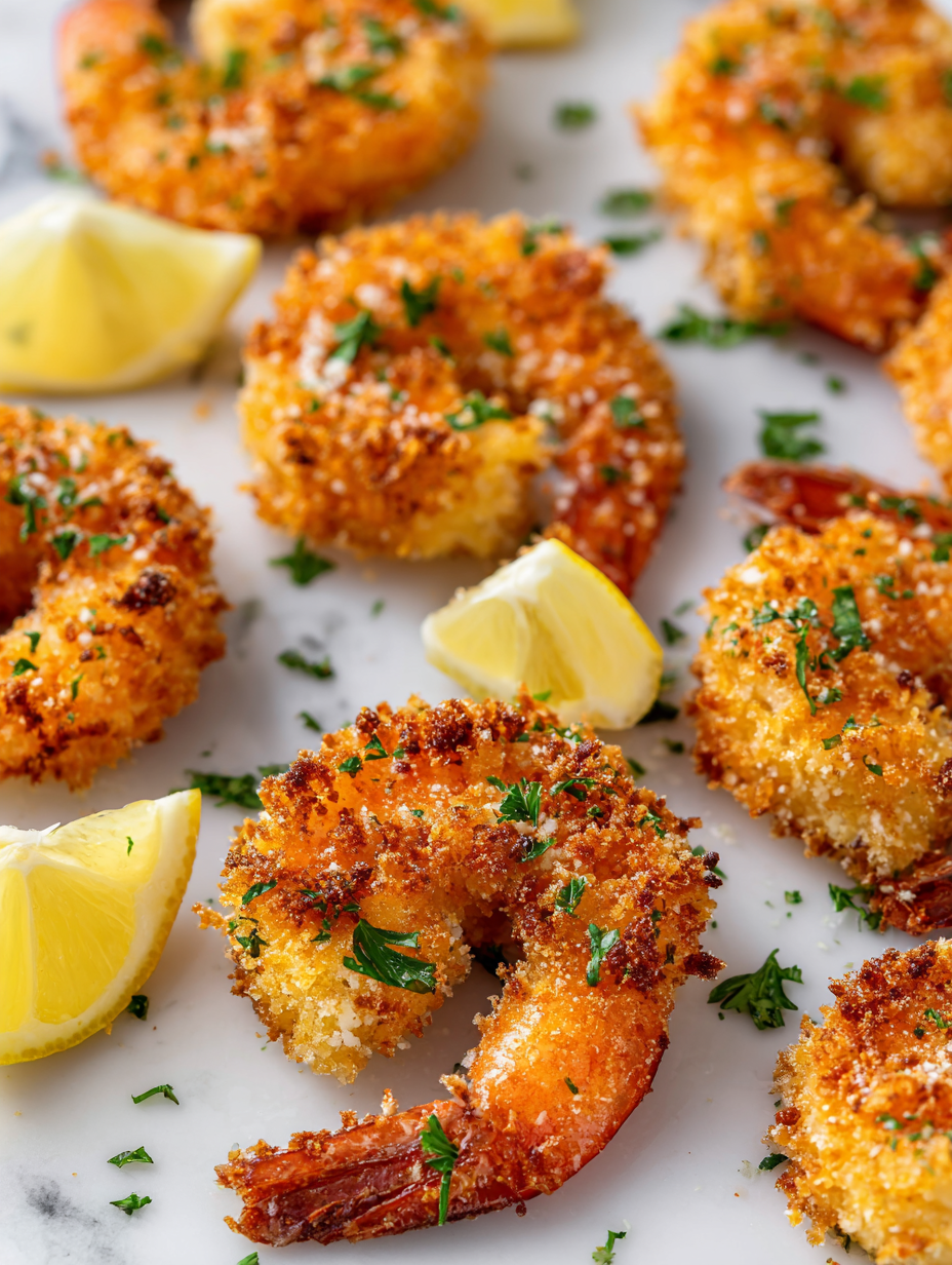 The key ingredients are the shrimp (fresh and firm), panko breadcrumbs (airy and crispy), and lemon (bright and zesty). Each adds a distinct texture and flavor.