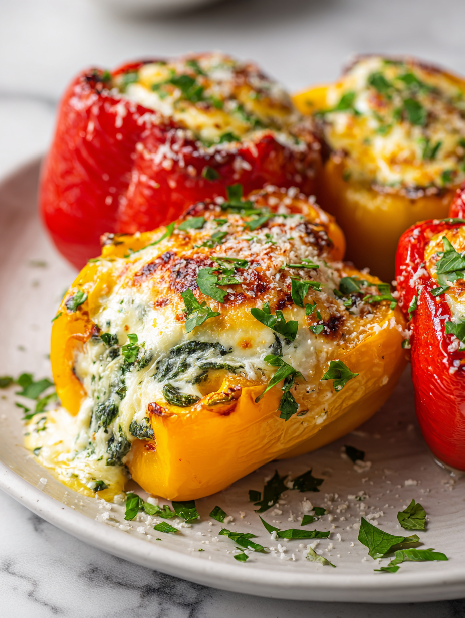Let the peppers rest for 5 minutes after baking. Finish with a sprinkle of fresh herbs or a drizzle of olive oil. Carefully transfer to plates, slicing to reveal the cheesy, tender interior.