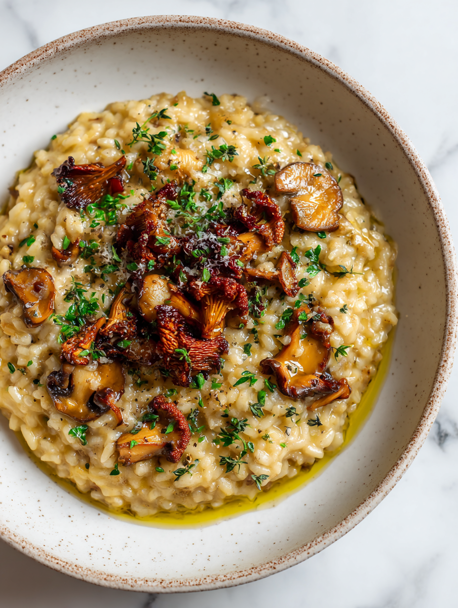 - Let the risotto rest for 2 minutes to settle and develop its flavors. Then, spoon into warm bowls, garnish with additional herbs or cheese if desired, and serve immediately. Enjoy the rich, earthy layers of flavor in every bite!